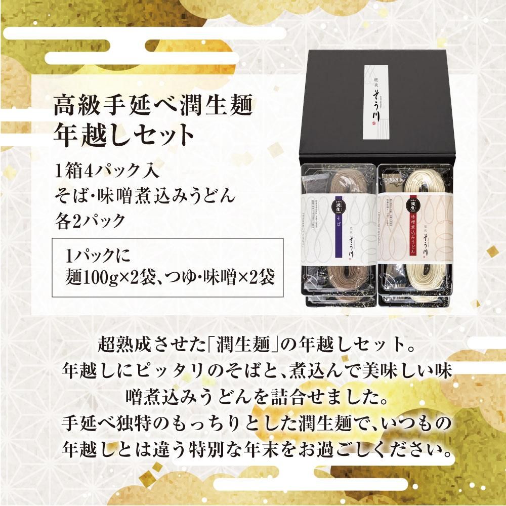 【高級手延べ潤生麺】年越セット 化粧箱入 そば 味噌煮込みうどん